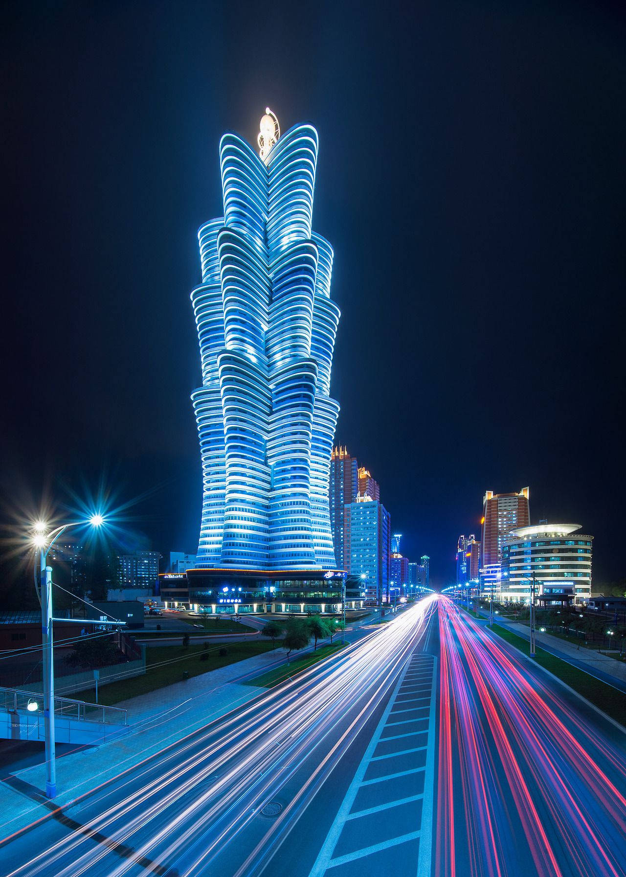 Blue Galaxy Tower In Pyongyang Wallpaper