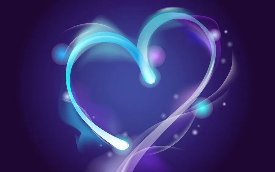Blue Neon Heart Digital Painting Wallpaper
