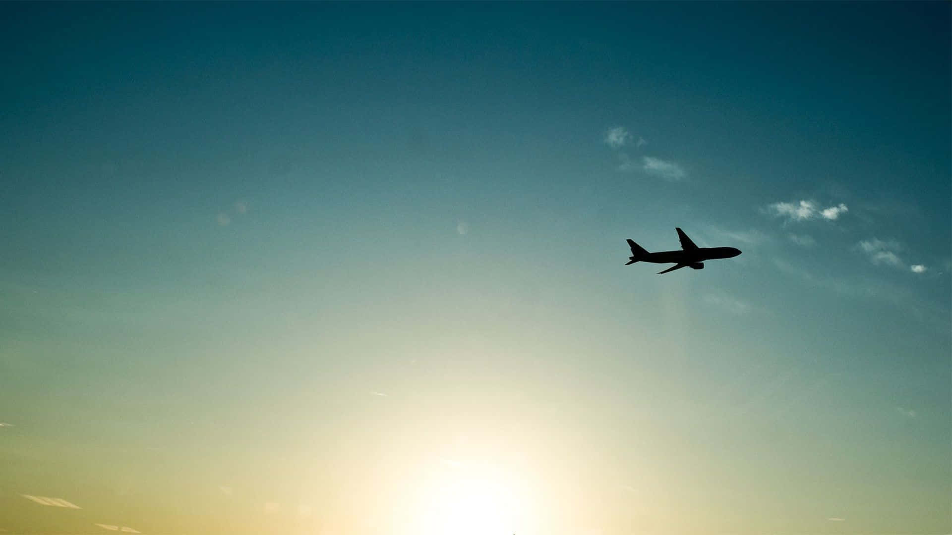 Blue Sky Silhouette Plane Background Wallpaper