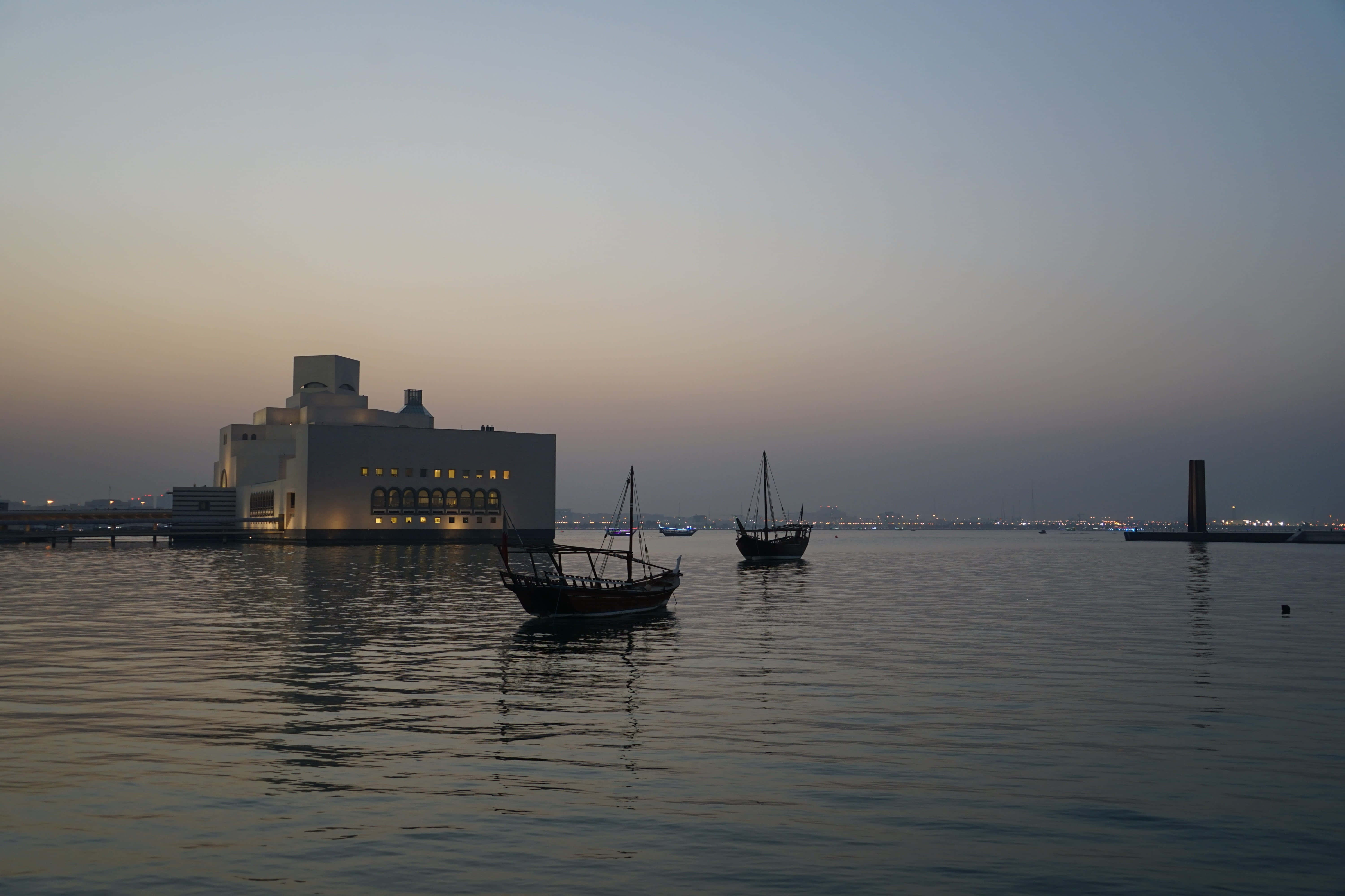 Boats At Dusk Near Museum Of Islamic Art Wallpaper