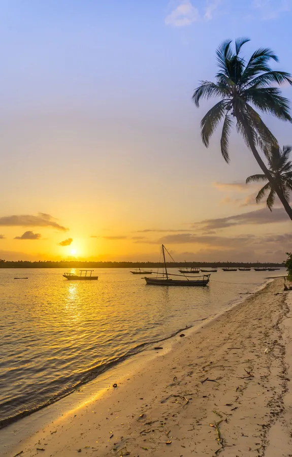 Boats Sailing On Tropical Beach Sunrise Wallpaper