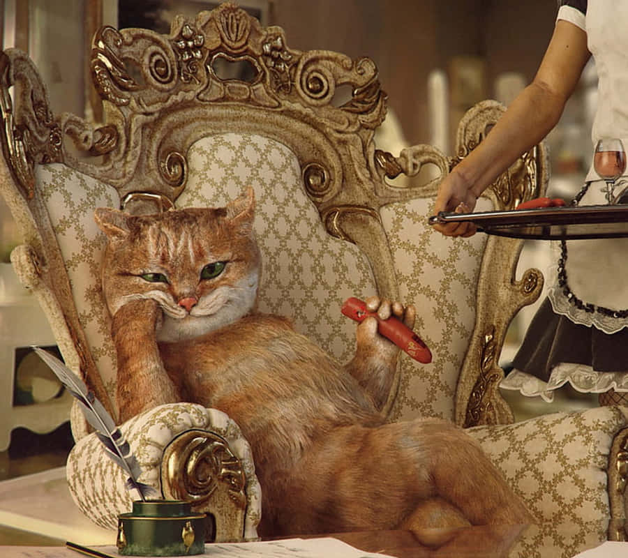 Boss Cat On Fancy Sofa Wallpaper
