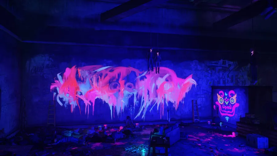 Bright Futuristic Urban Scene With Neon Lights Wallpaper