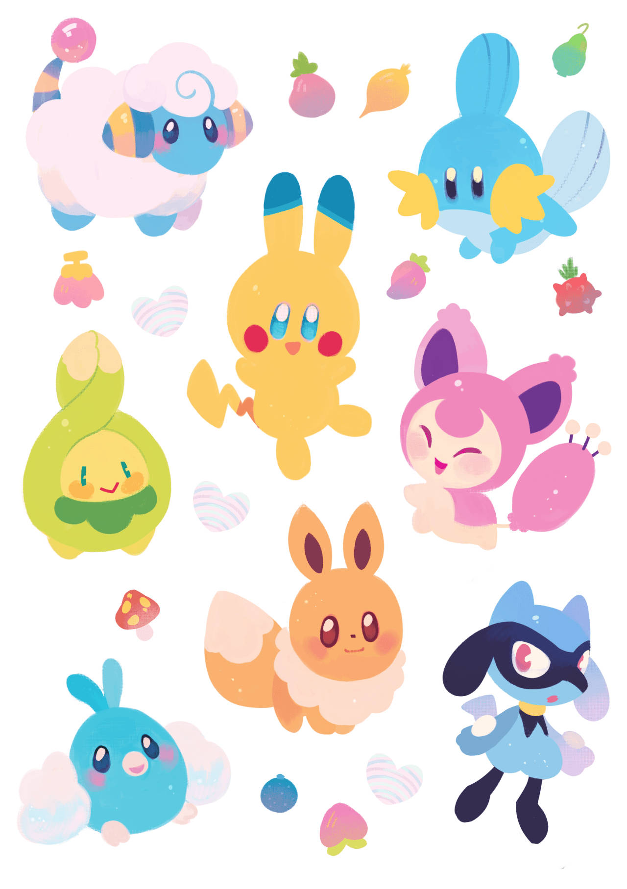 Budew With Other Pokémon Characters Wallpaper