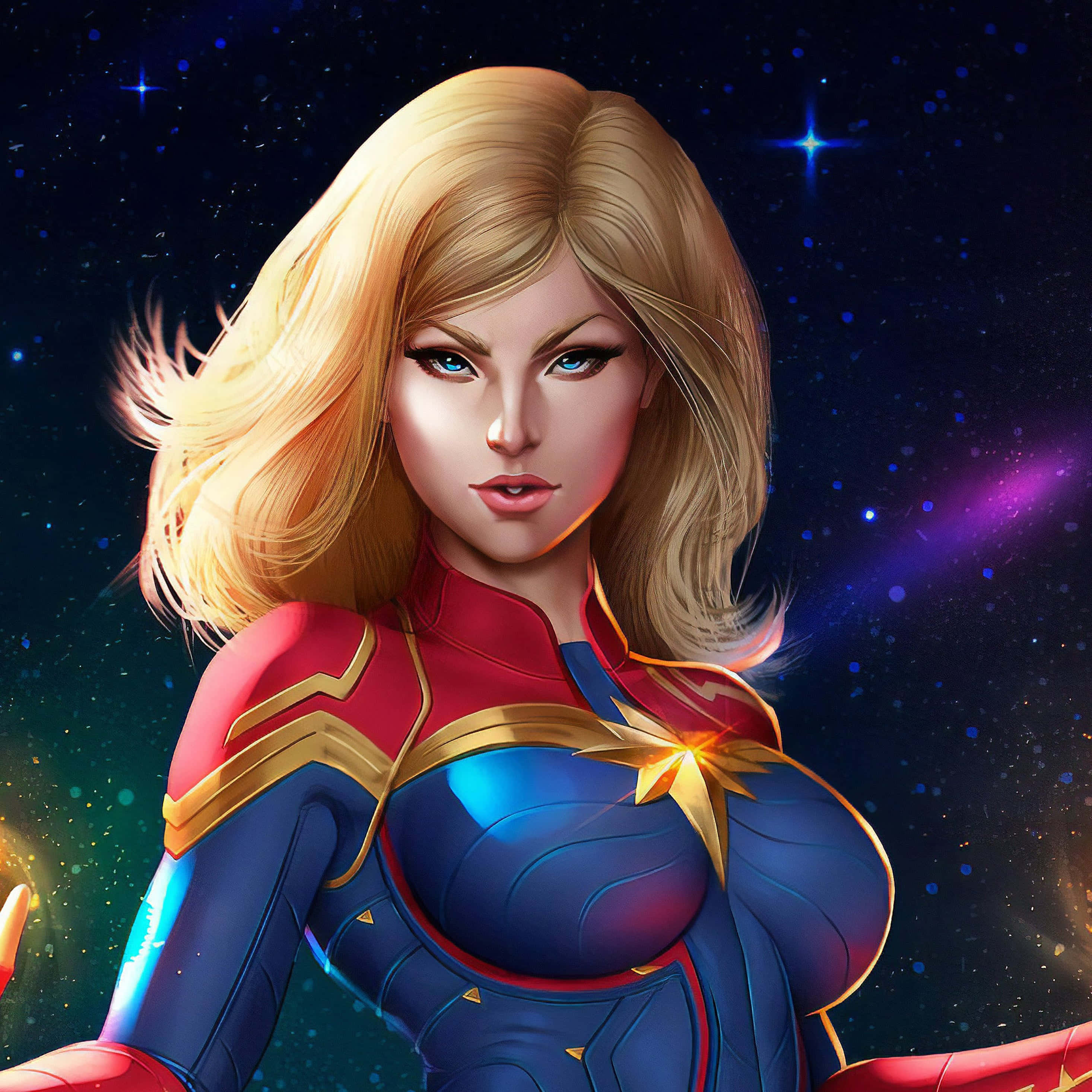 “captain Marvel Ready For Takeoff On Her Ipad” Wallpaper