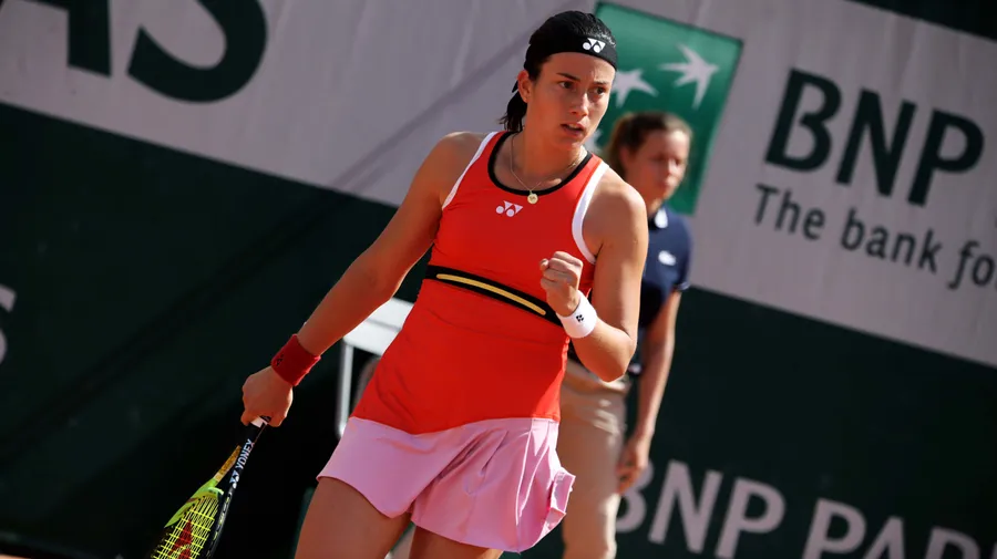 Caption: Anastasija Sevastova In Action With A Red Sleeveless Top Wallpaper
