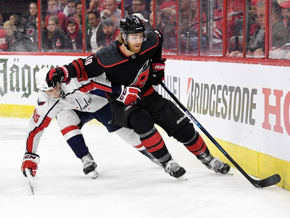 Caption: Dougie Hamilton In Action Against Andre Burakovsky Wallpaper