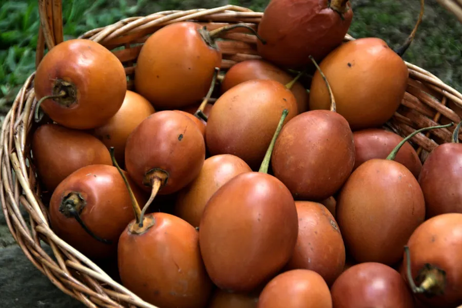 Caption: Exotic Tamarillo Fruits In A Rustic Basket Wallpaper
