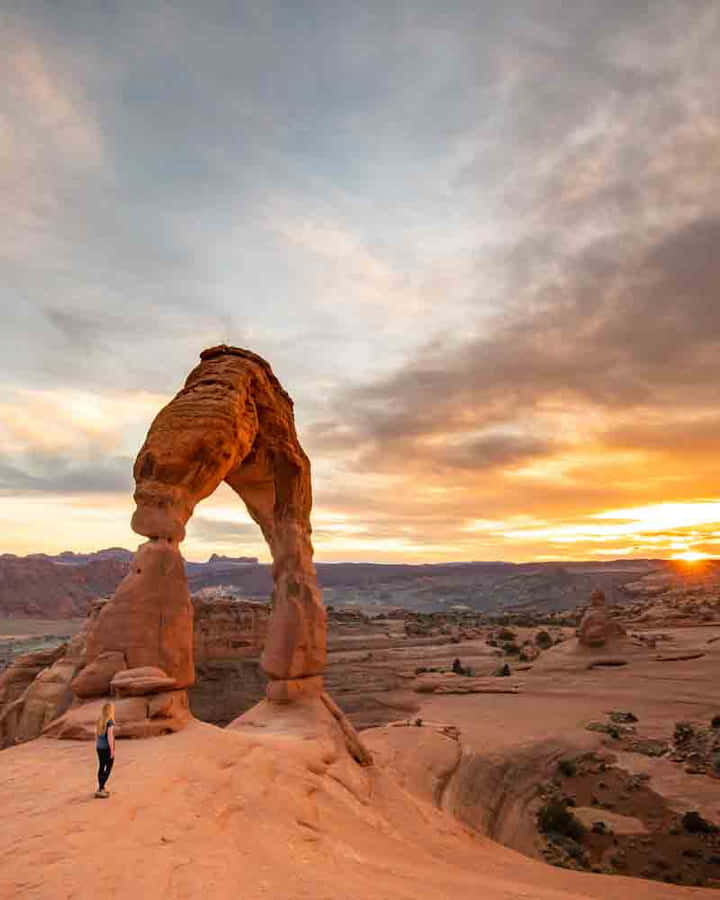 Caption: “magnificent View Of Delicate Arch At Sunset” Wallpaper