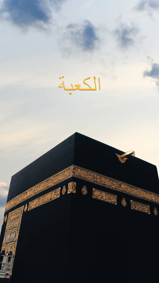 Caption: Majestic View Of The Kaaba With Golden Arabic Inscriptions Wallpaper