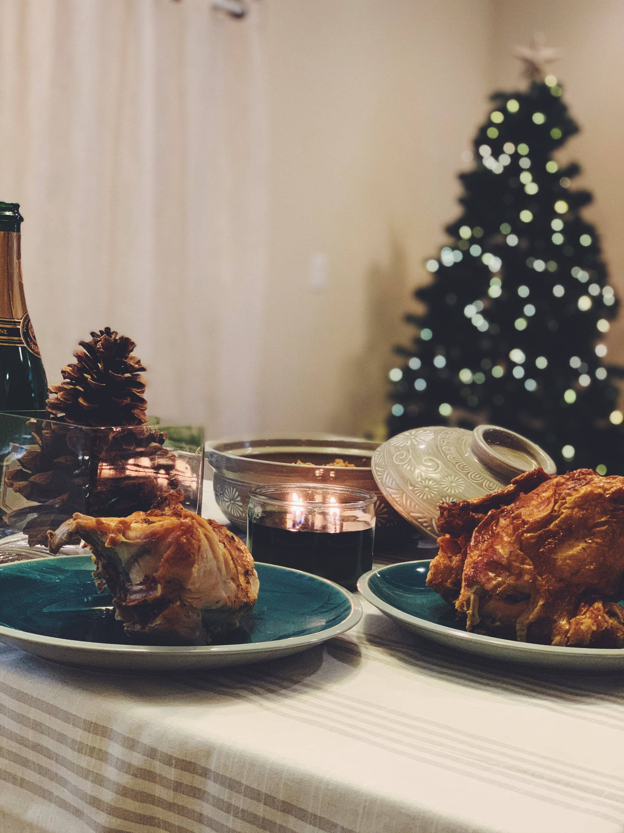 Caption: Mouth-watering Thanksgiving Dinner With Chicken And Turkey Dish Wallpaper