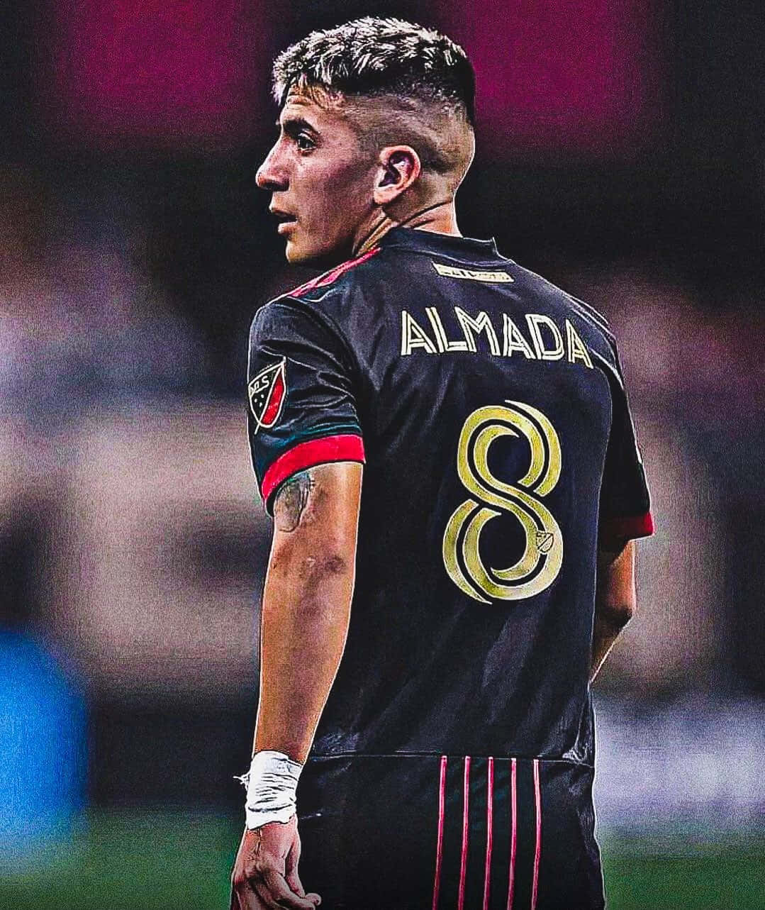 Caption: Rising Football Star – Thiago Almada In Black Atlanta Jersey Wallpaper