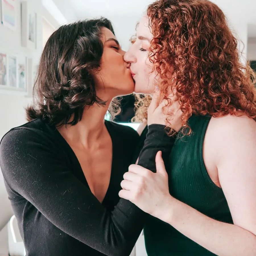 Caption: “two Women Embracing With Love And Pride, Displaying Their Beautiful Curly Hair” Wallpaper