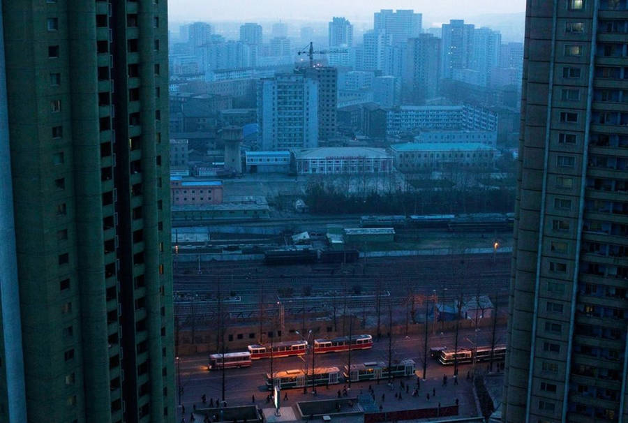 “captivating Skyline Of Pyongyang At Night” Wallpaper