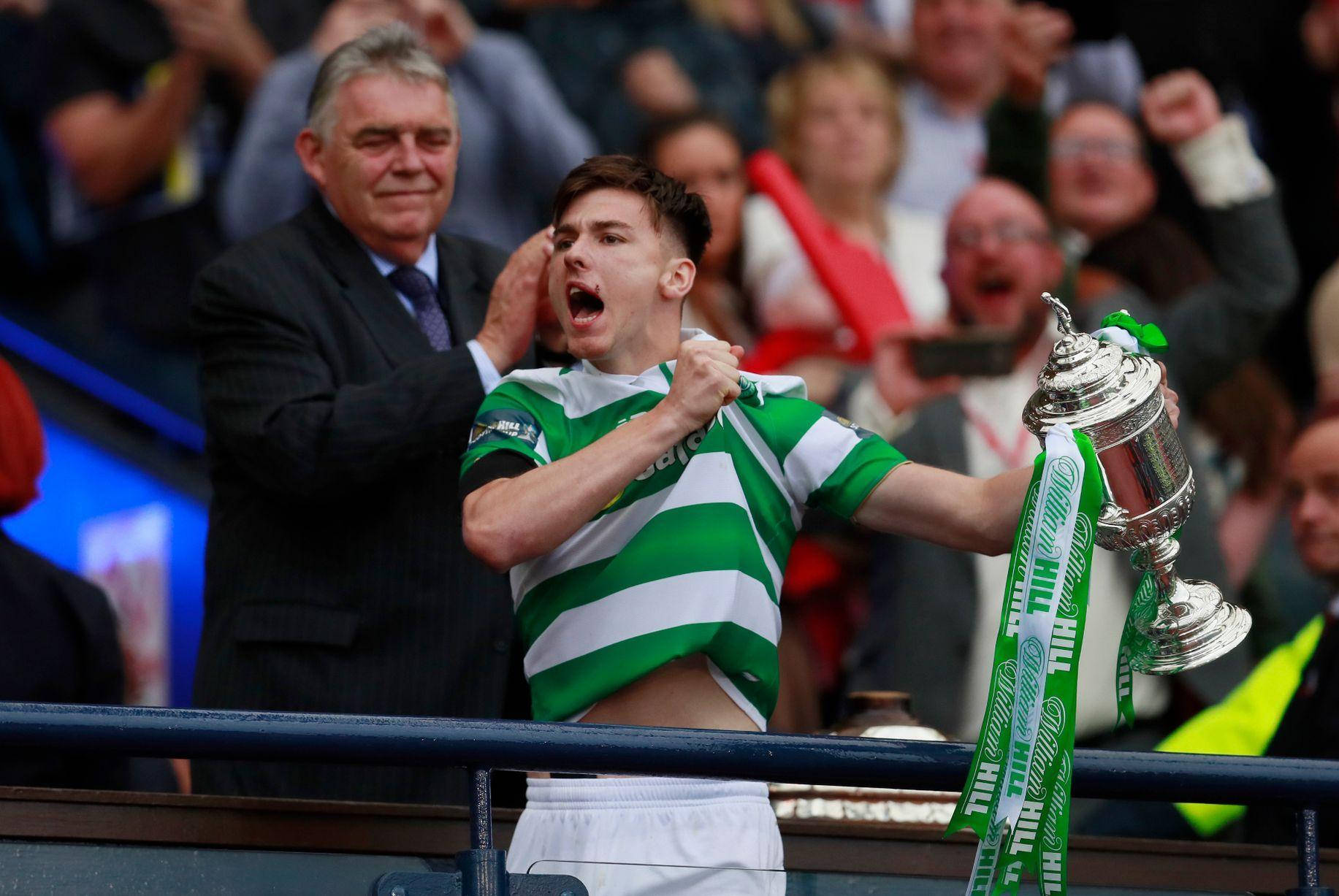 Celebrating Kieran Tierney With Trophy Wallpaper