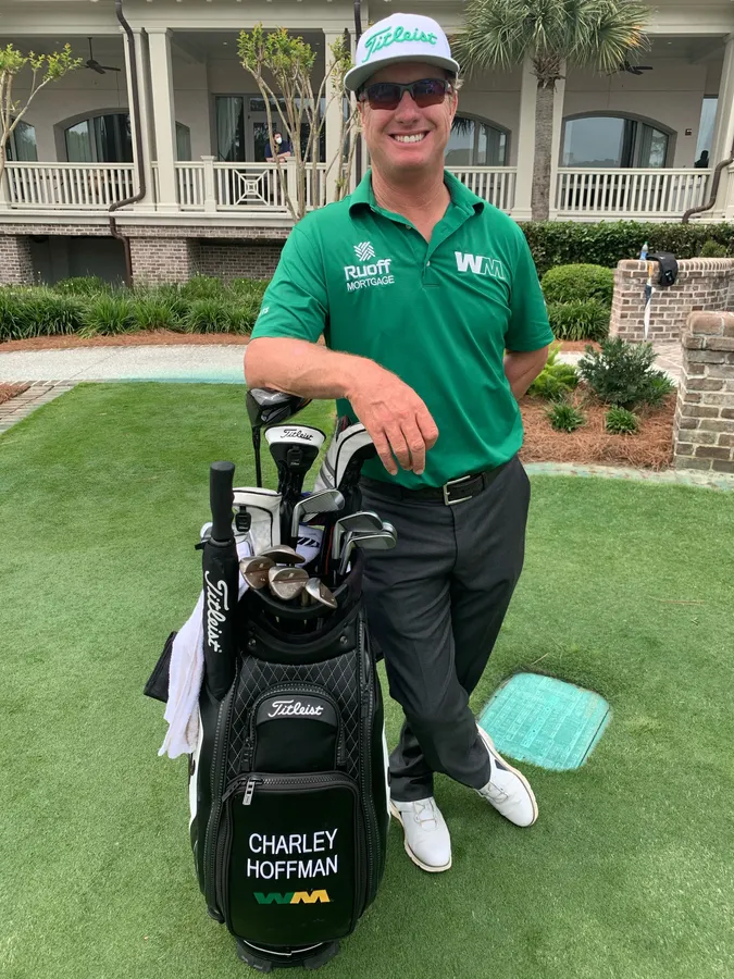 Charley Hoffman Posing With Golf Bag Wallpaper
