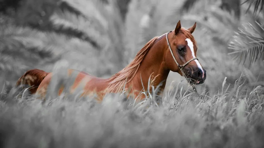 Chestnut Horsein Monochrome Field Wallpaper