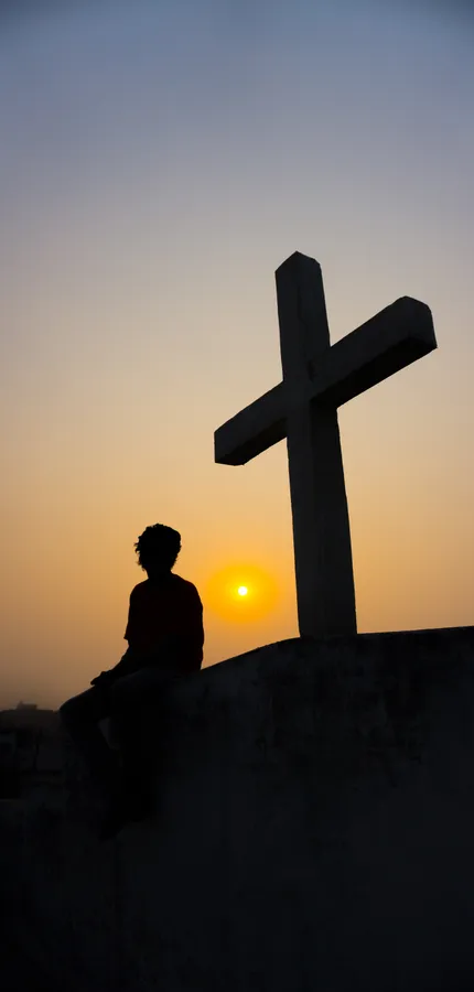 Christian Cross Against Sunset Horizon Wallpaper