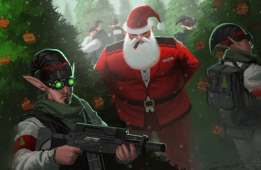 Christmas Elves With Guns Wallpaper