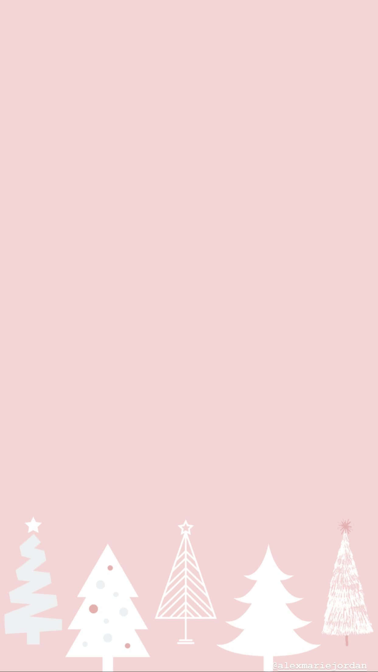Christmas Trees On A Pink Background Wallpaper
