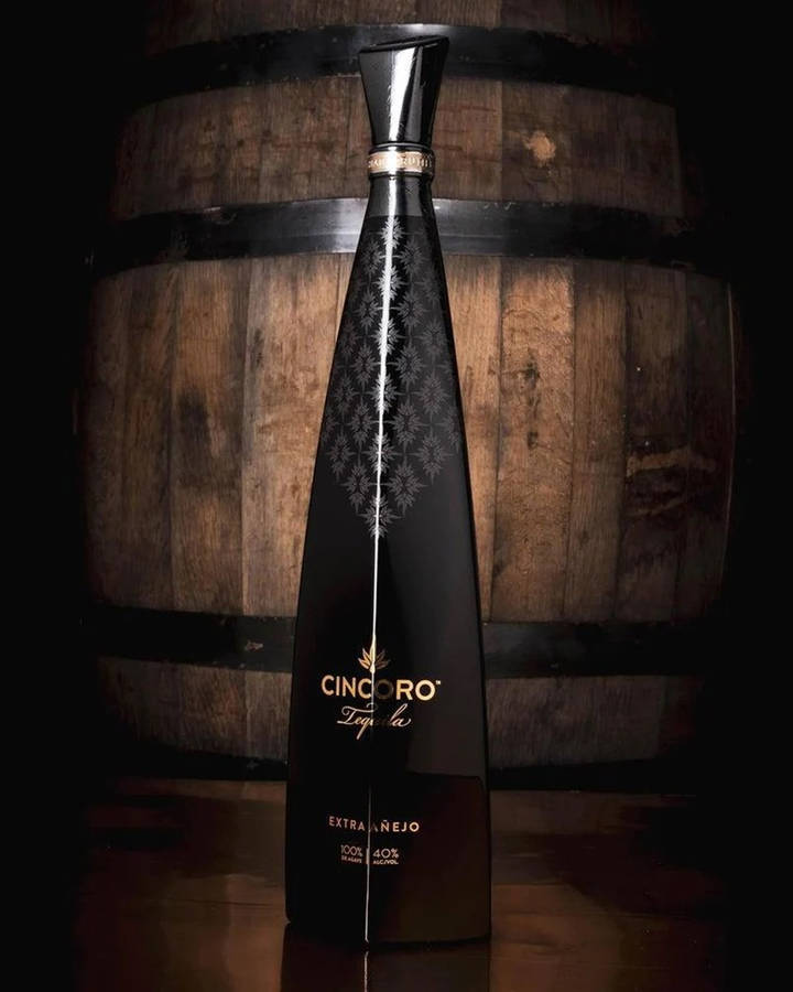 Cincoro Tequila Extra Anejo Beside Wooden Cask Wallpaper