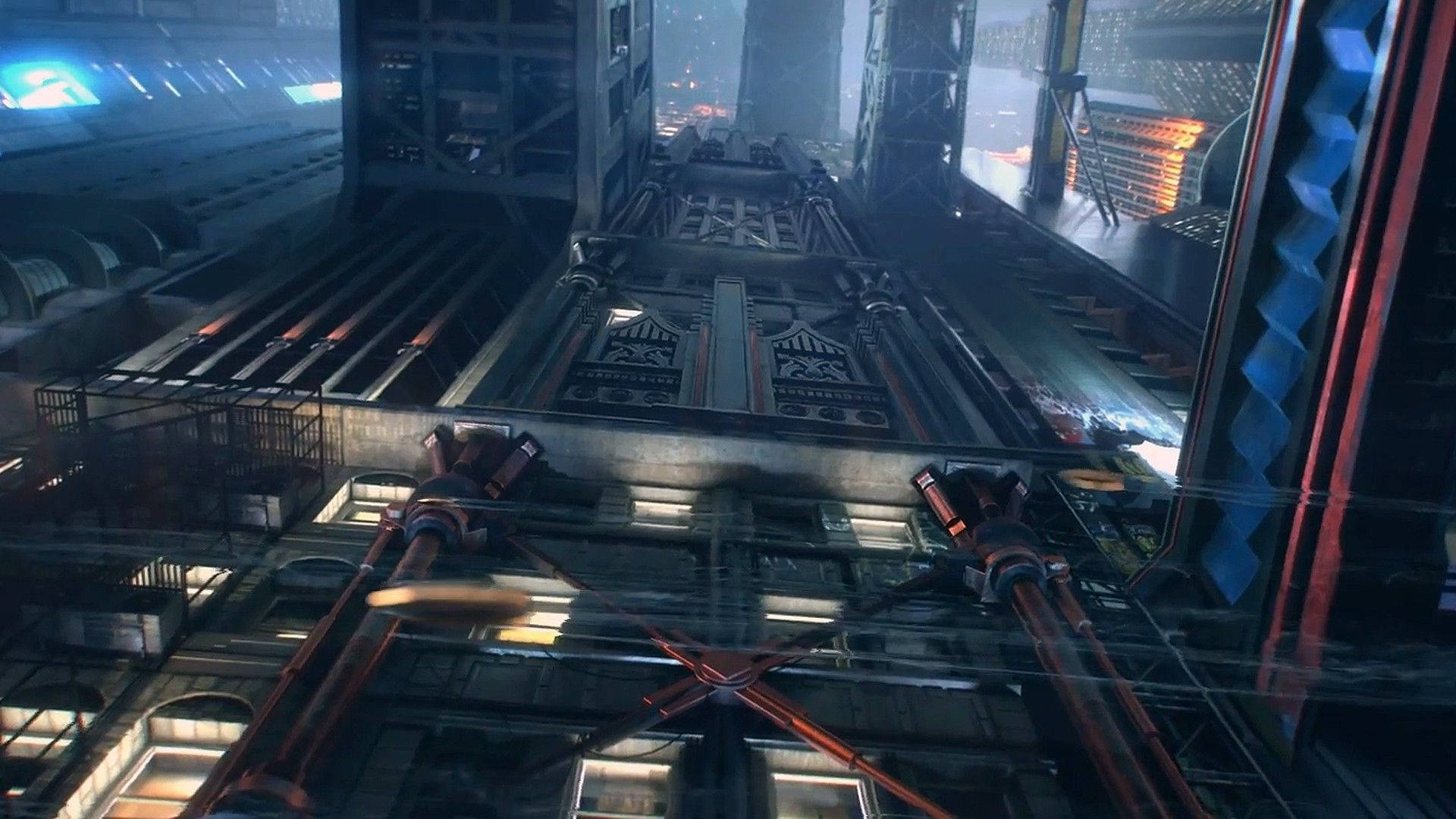 City Building Cyberpunk 1920×1080 Worm’s Eye View Wallpaper