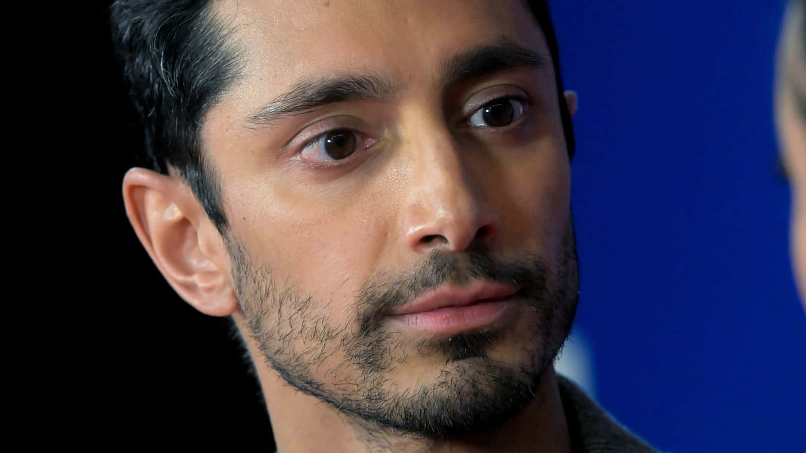 Close Up Portraitof Man Against Blue Background Wallpaper