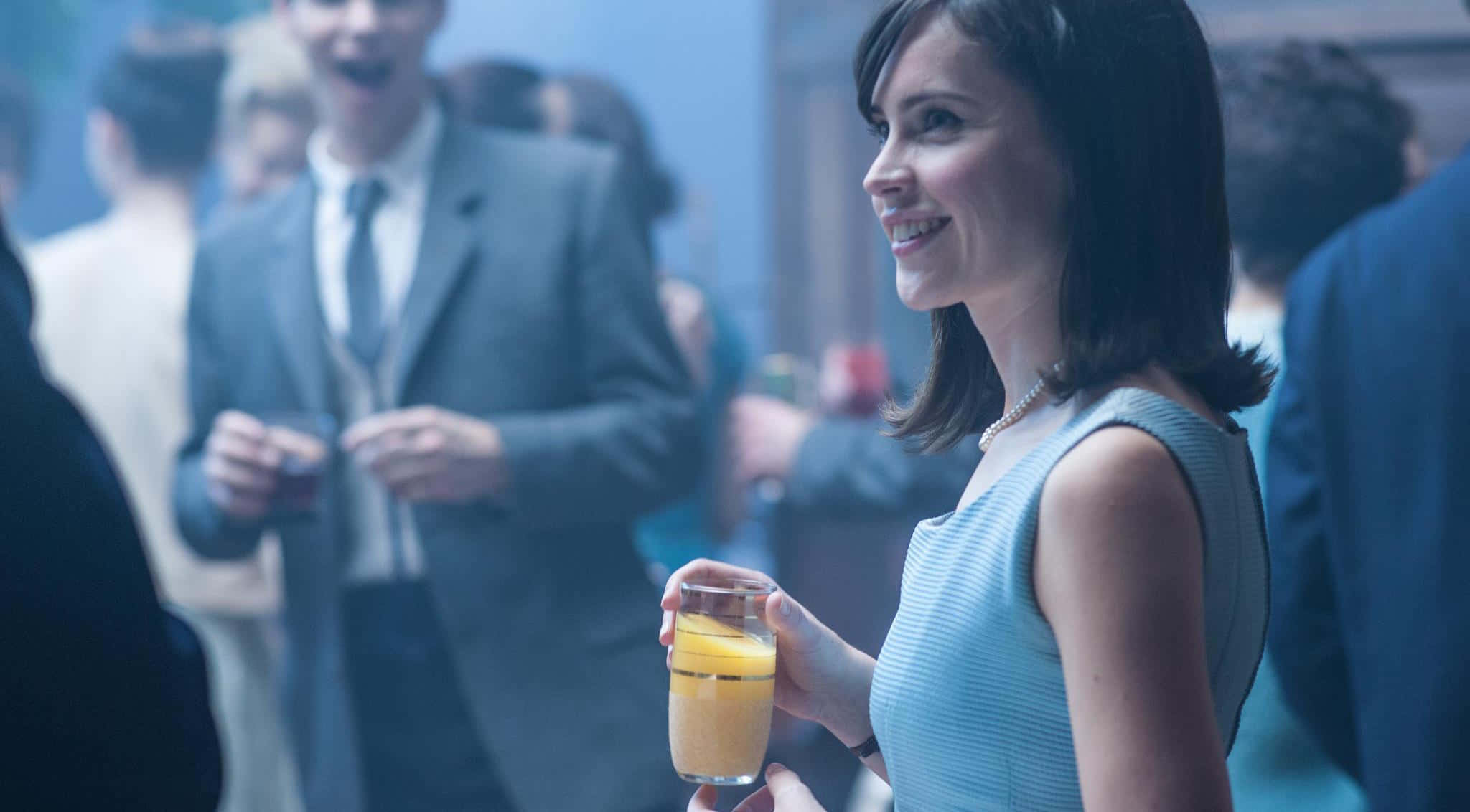 Cocktail Party Smiling Woman Holding Drink Wallpaper