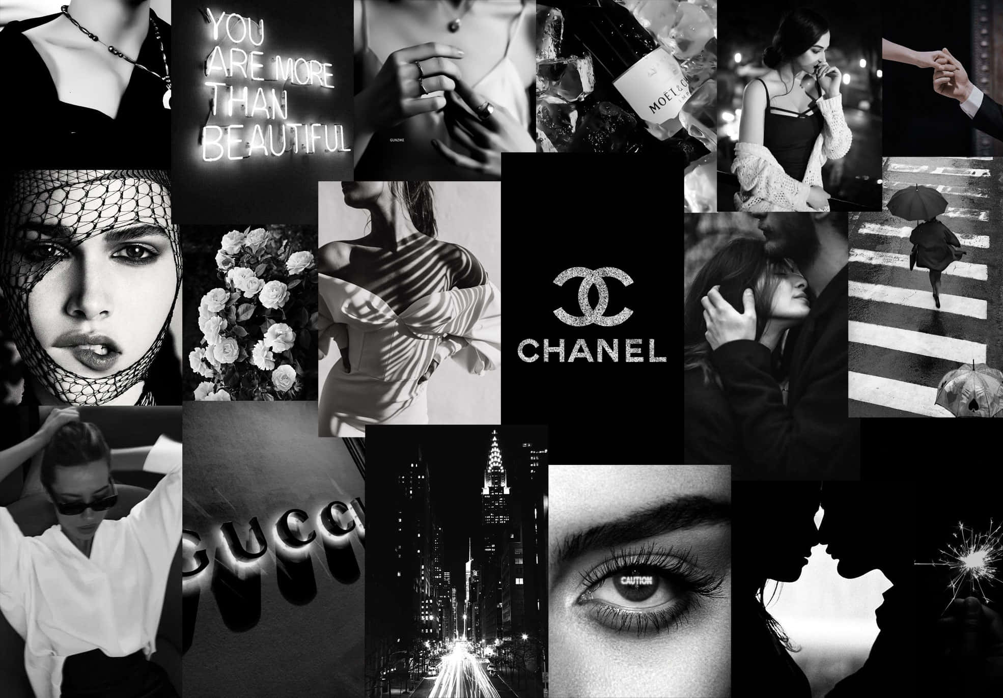 Color Your World With A Unique Black And White Collage Wallpaper