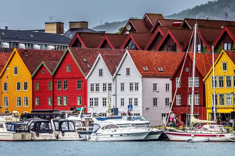 Colorful Bryggen Harbor Bergen Norway Wallpaper