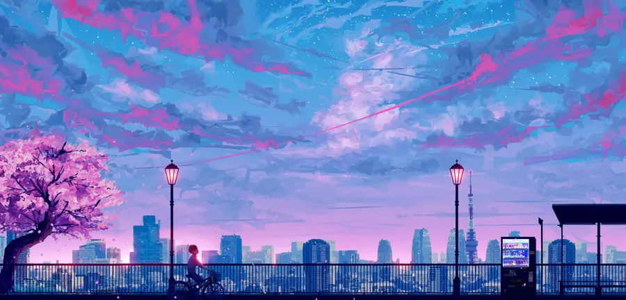 Colorful Evening Sky Lit Up By Blue And Purple Hues. Wallpaper