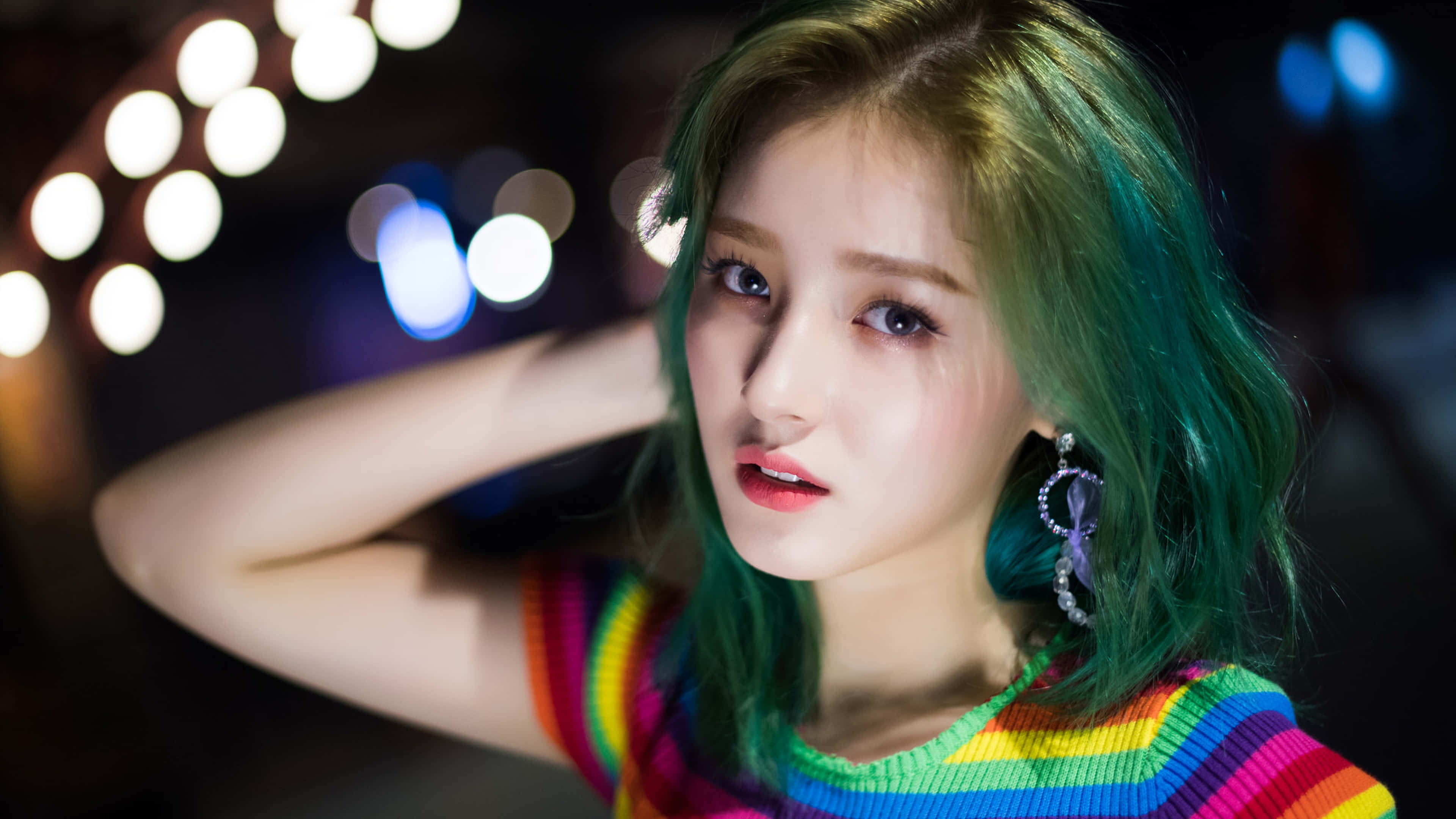 Colorful Portrait Of Woman With Bokeh Background Wallpaper