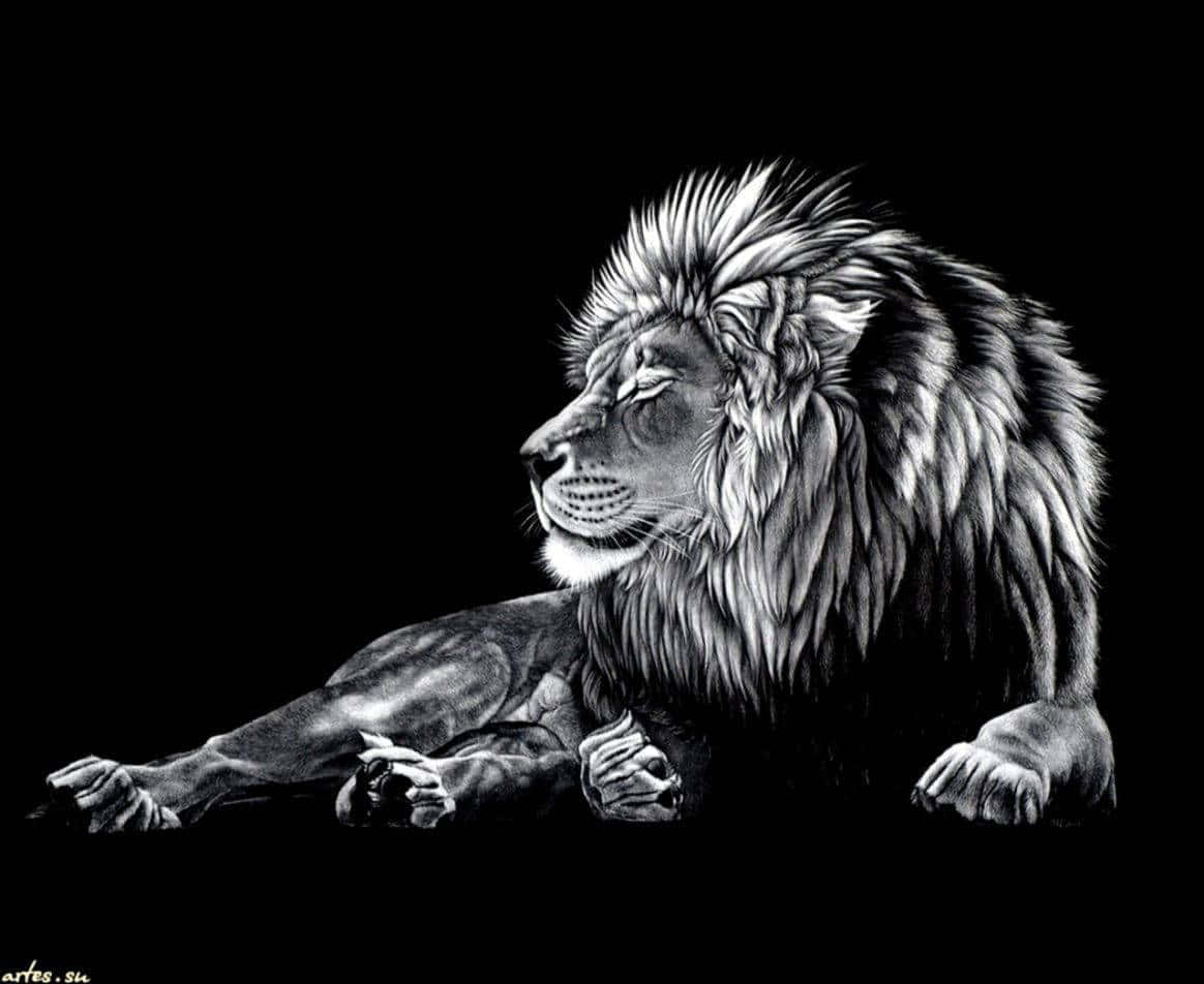 Cool Black And White Lion Sitting Wallpaper