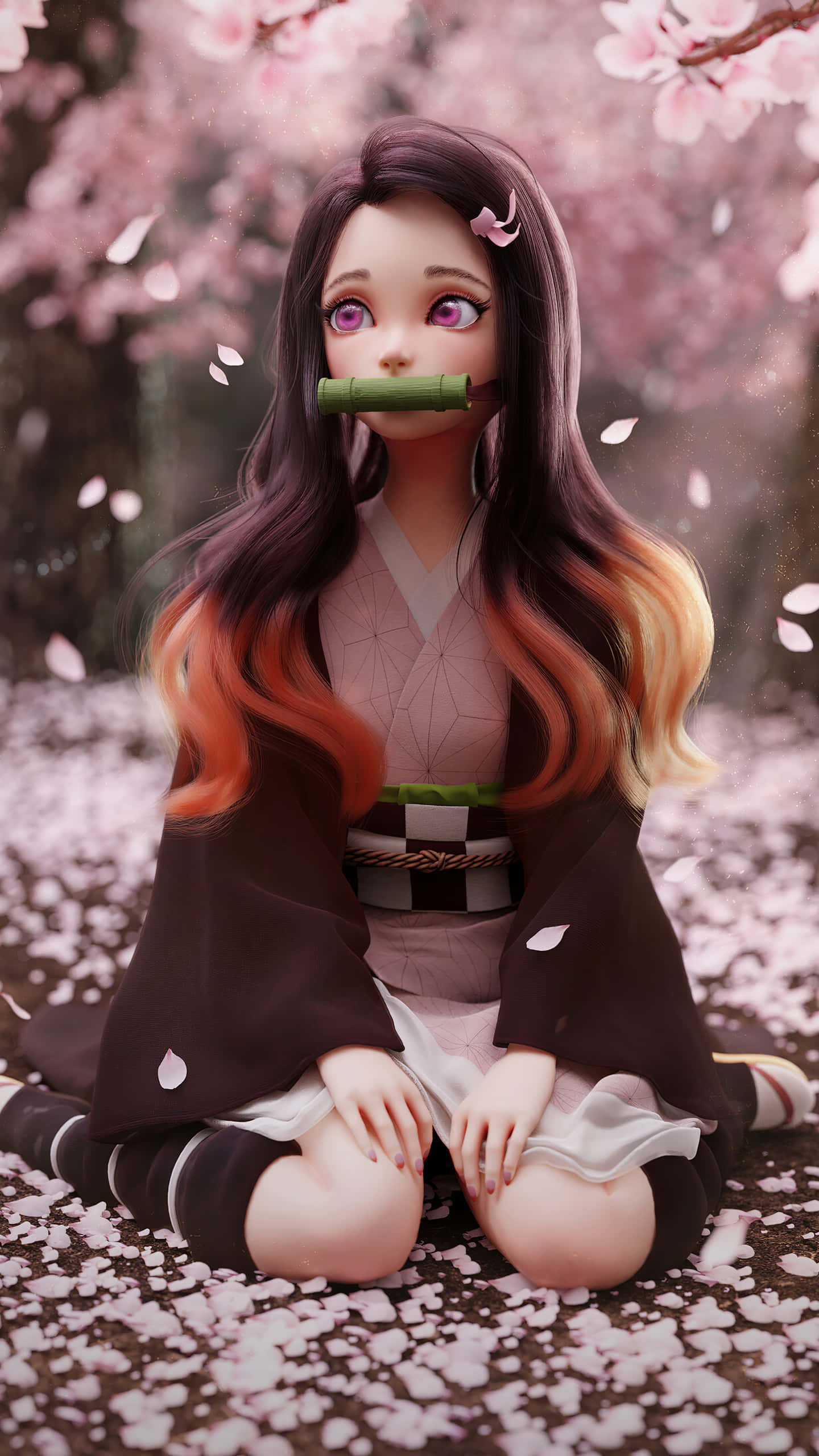 Cool Nezuko From Kimetsu No Yaiba Looks Fierce And Ready For Battle! Wallpaper