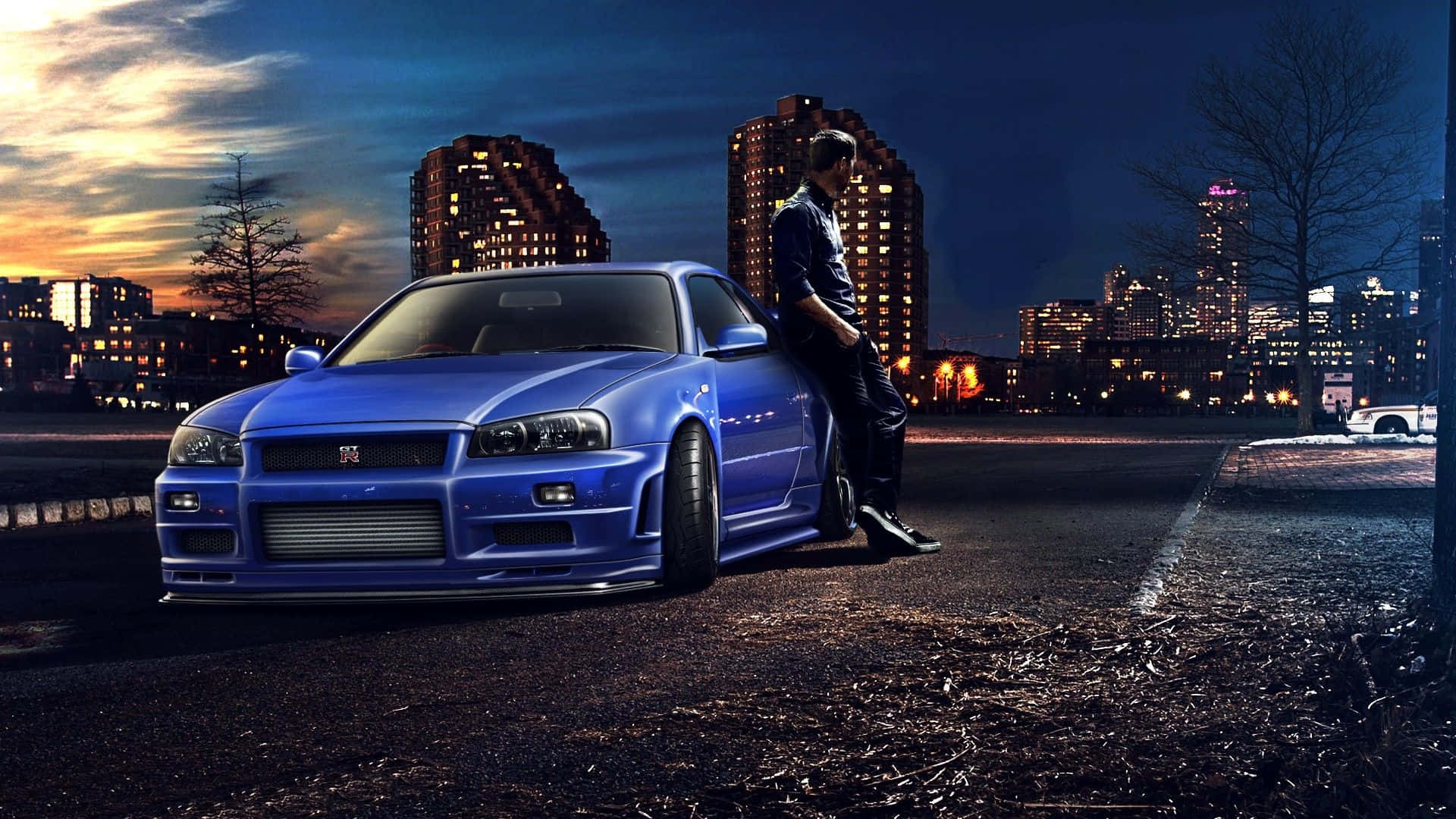 Cool Nissan Skyline With A Man Leaning On Its Side Wallpaper