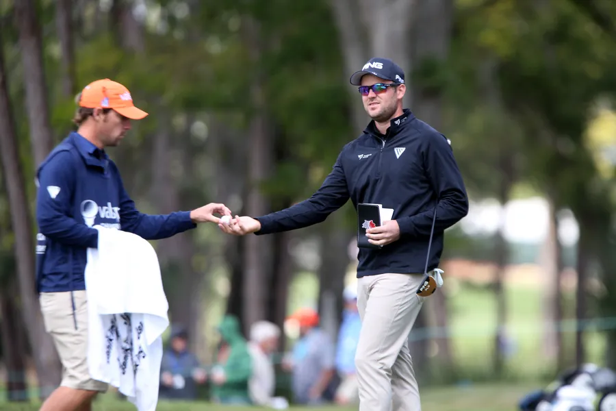 Corey Conner Receiving A Golf Ball Wallpaper