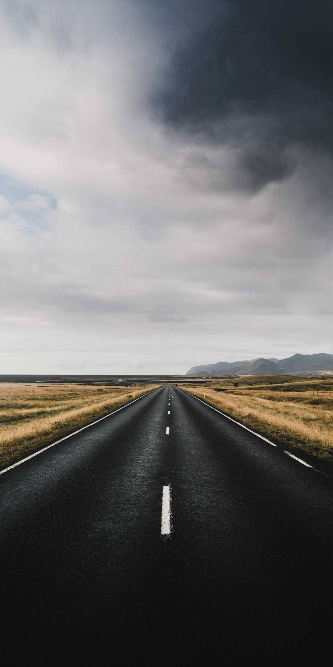 Country Road Dark Grey Clouds Wallpaper