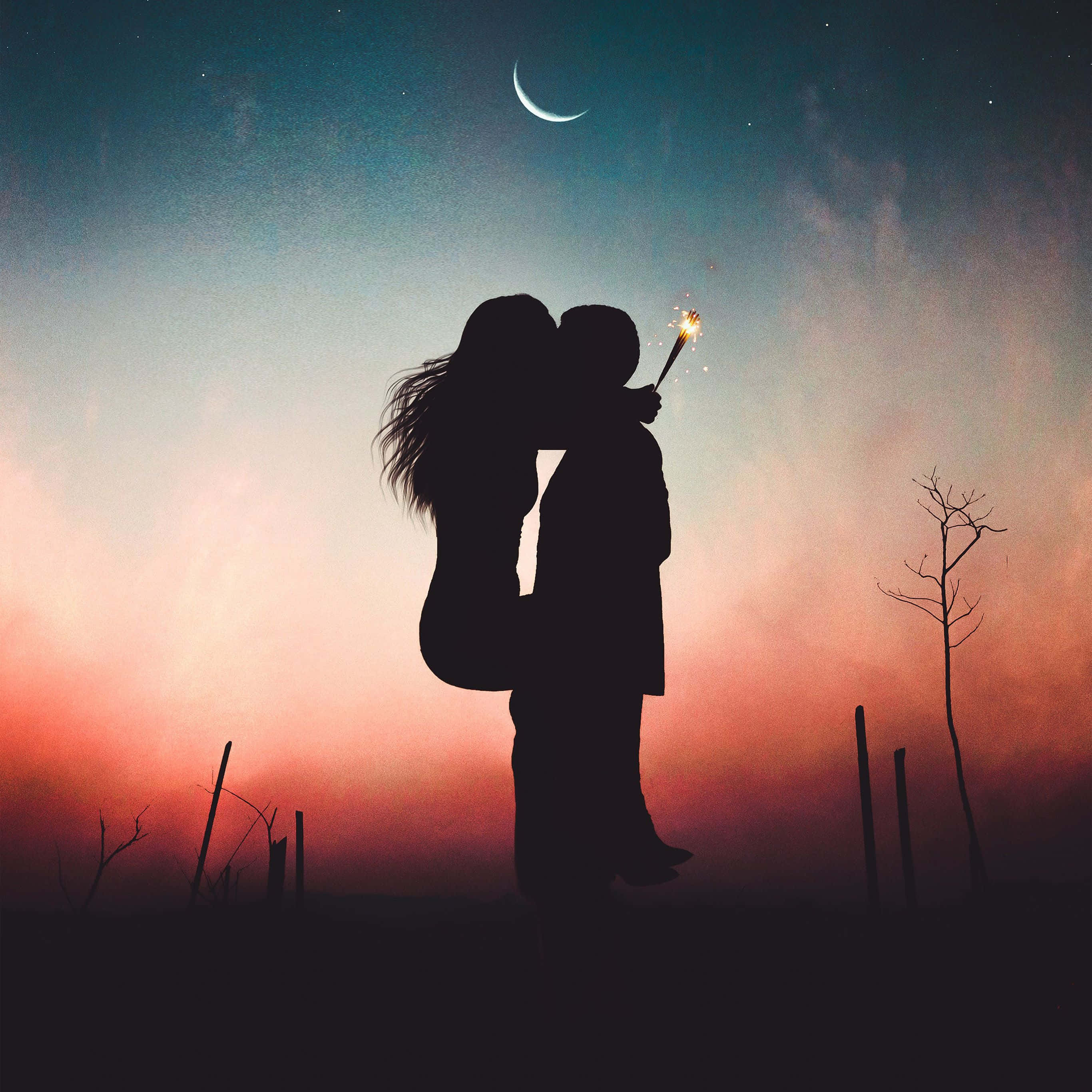 Couple Kissing Lips Under The Moon Wallpaper