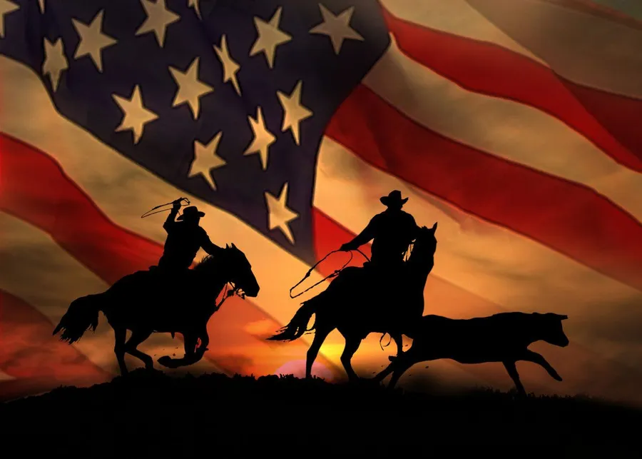 Cowboys And Cows On The American Flag Wallpaper