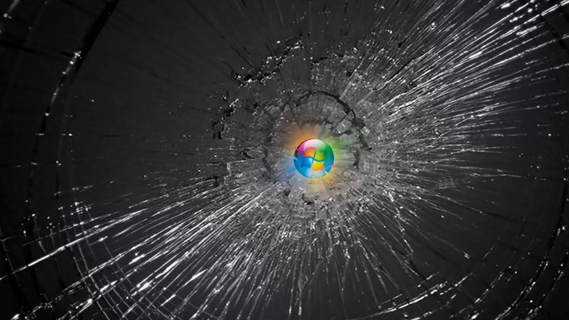 Cracked Black Windows Computer Screen Wallpaper