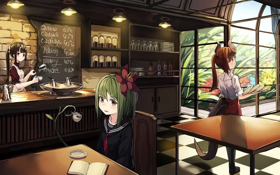Craving A Coffee In A Unique Atmosphere? Visit Cafe Anime, Now Serving Your Favorite Beverages In A Vibrant Anime-inspired Setting! Wallpaper