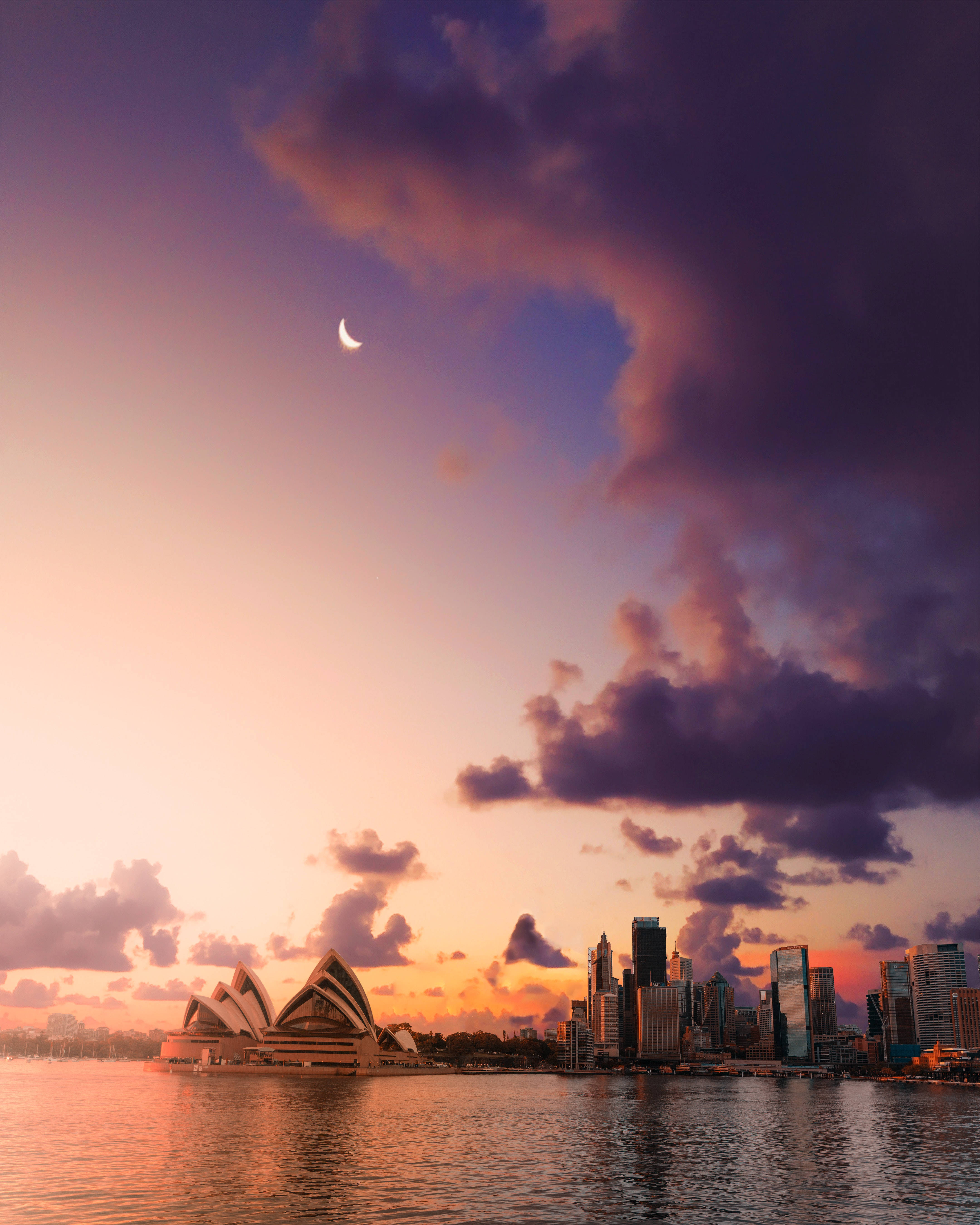 Crescent Moon In The City Wallpaper