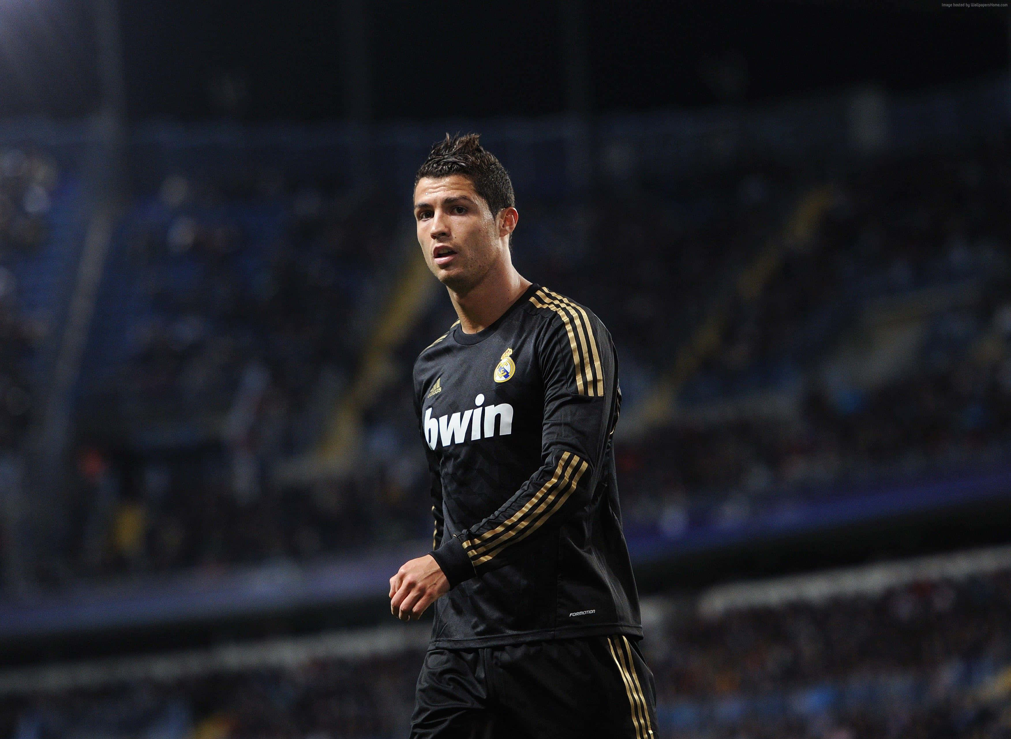 Cristiano Ronaldo Takes The Ball Down The Pitch During A Soccer Match Wallpaper