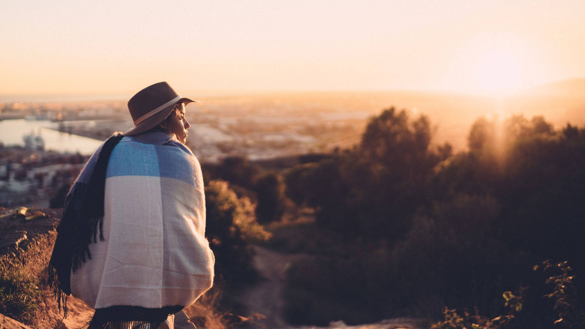 Crouching Girl Mountain Journey Wallpaper