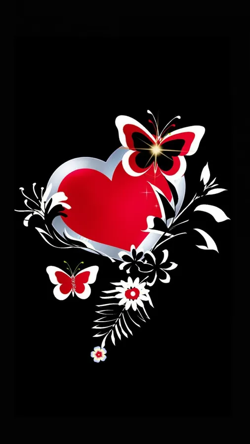 Cute Dark Red Heart And Butterfly Wallpaper