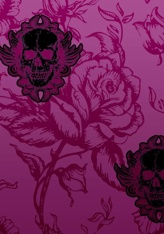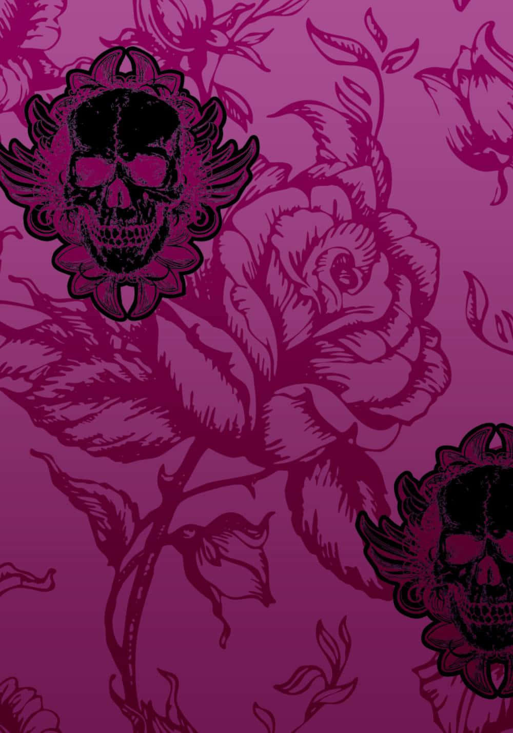 Cute Gothic Black And Pink Skull Flowers Wallpaper