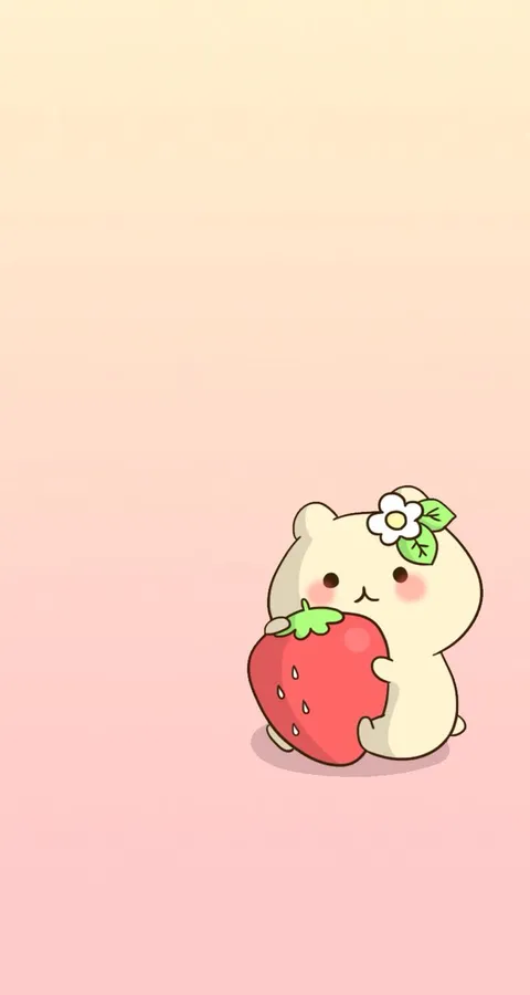 Cute Strawberry And A White Bear Wallpaper