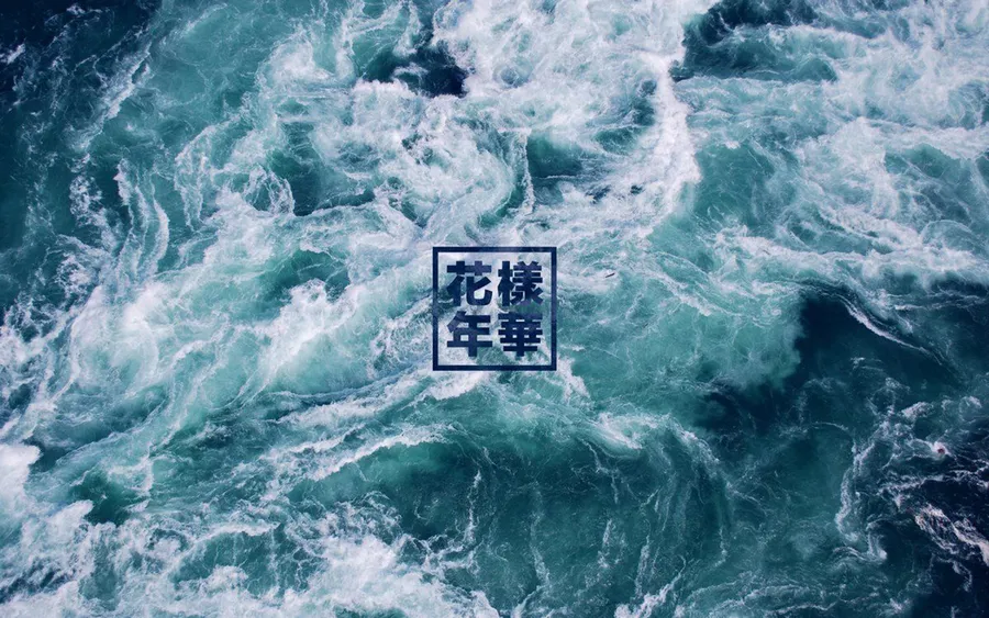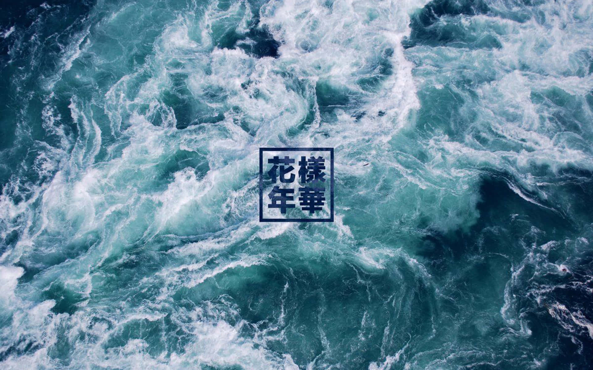 Cyan Aesthetic Ocean With Chines Character Wallpaper