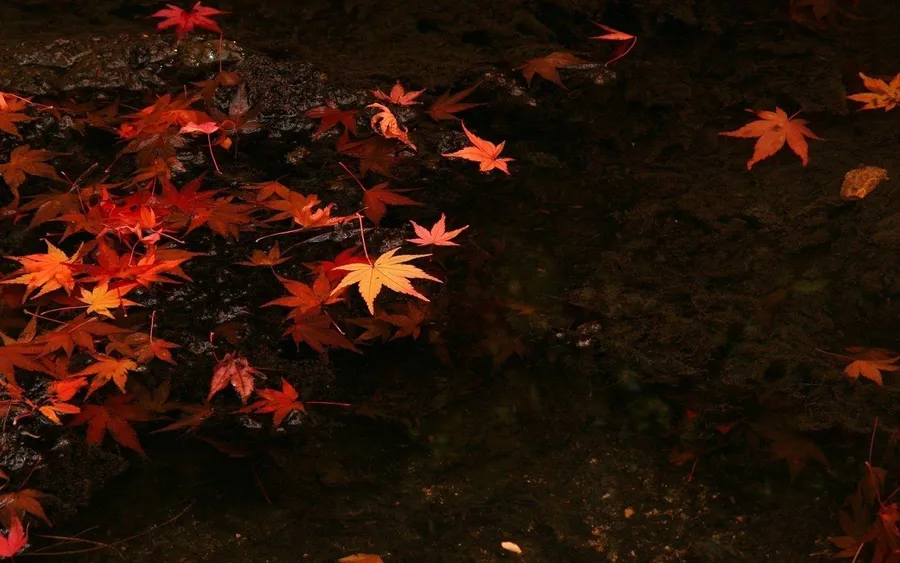 Dark Autumn Maple Leaves In Water Wallpaper