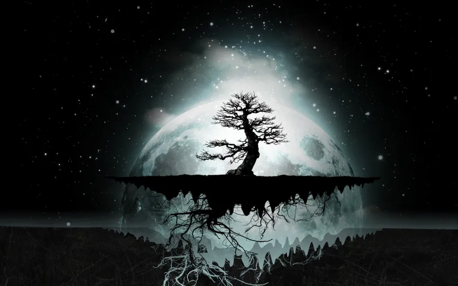 Dark Psychedelic Hd Tree Silhouette Wallpaper
